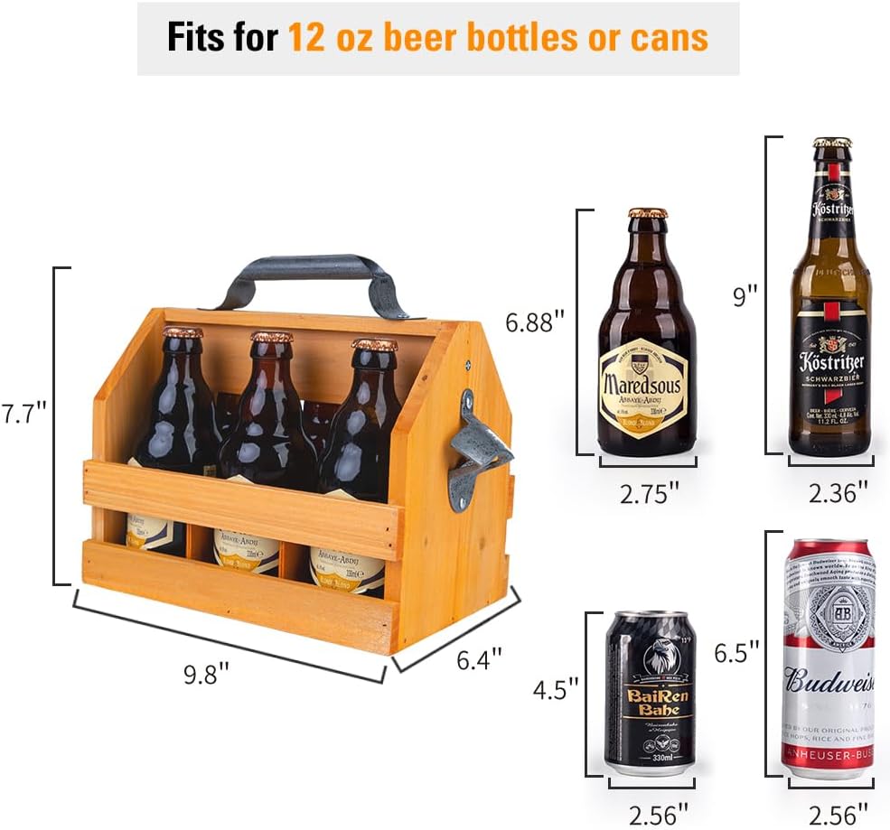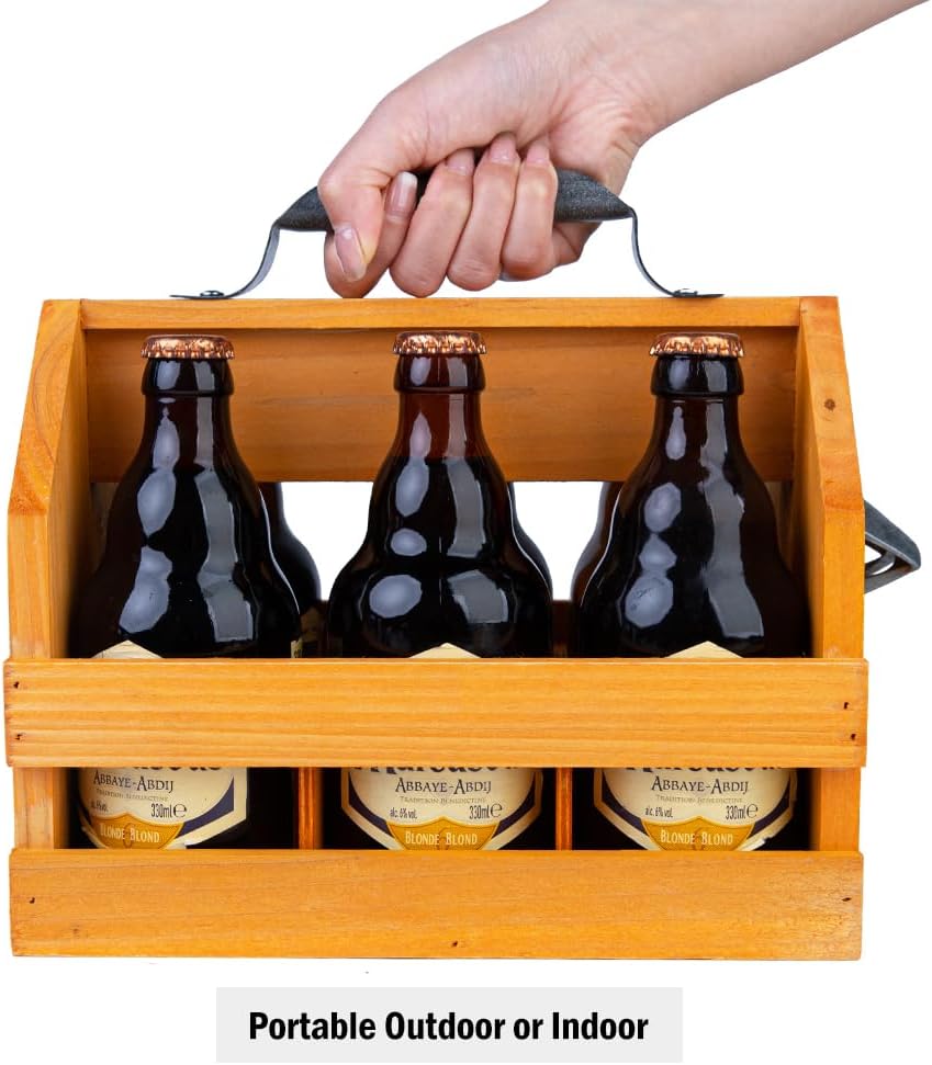 The Wooden 6-Bottle Caddy with Bottle Opener (Brown) is an exemplary product that blends functionality with timeless design. Its wood and metal construction lends durability and vintage appeal, while the built-in bottle opener adds a layer of convenience. Highly versatile and portable, it is perfect for various settings from home bars to outdoor gatherings. It also makes a thoughtful and practical gift for any beer lover. Overall, this beer caddy promises to enhance the enjoyment and presentation of your favorite beverages.