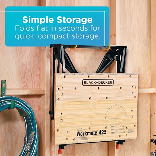 The BLACK+DECKER Workmate WM425-A is a robust, portable workbench that serves multiple purposes including clamping, painting, and cutting. It is constructed to be a versatile asset for carpenters, mechanics, DIY enthusiasts, and woodworkers.
