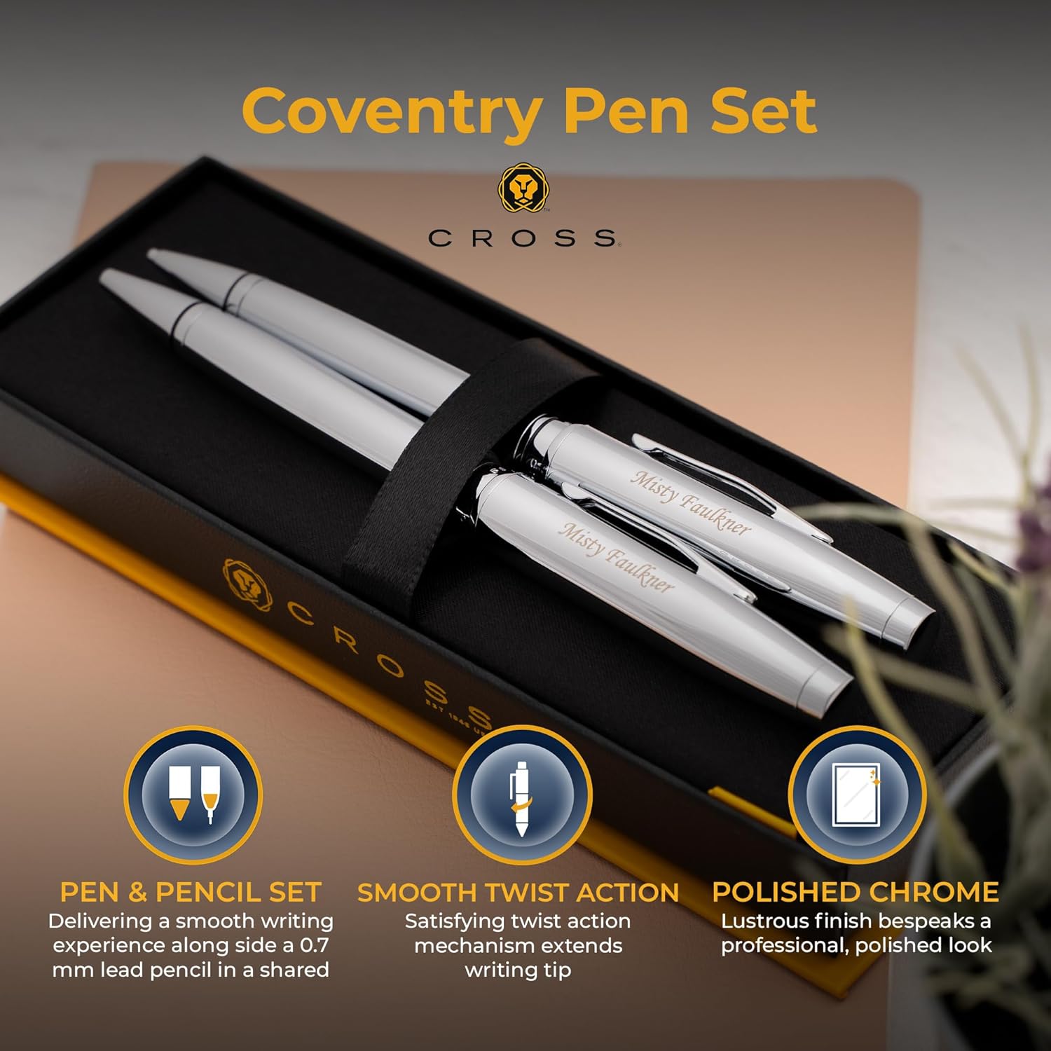 American Design: Discover the robust feel of the Cross Coventry set. Both are constructed with a durable metal body and a lustrous chrome finish, offering luxury and durability in one package.