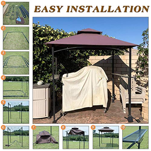 Grill Gazebo 8'x 5' Barbecue Canopy BBQ Gazebo Canopy Tent w/Air Vent Double Tiered Outdoor Brown Review