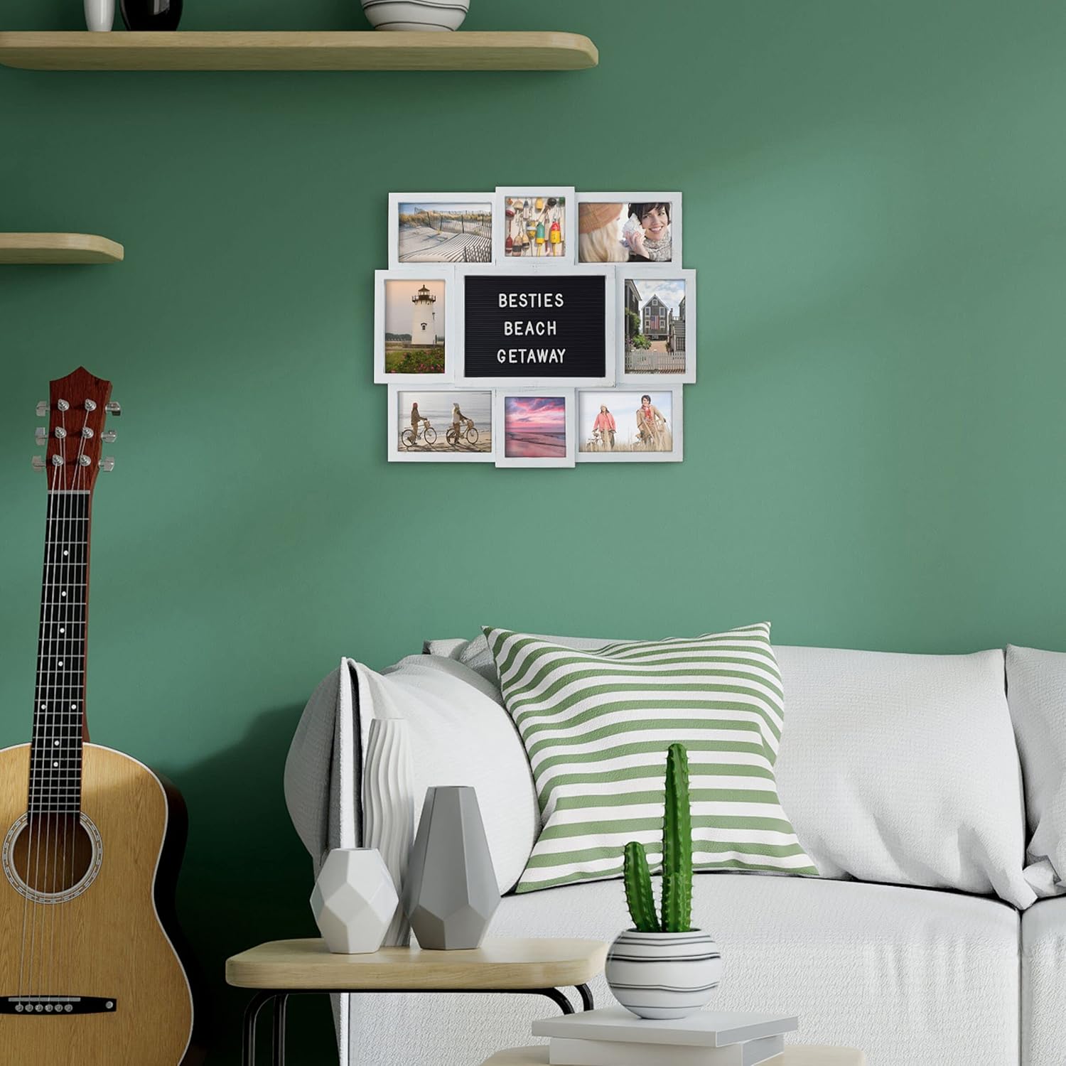 The MELANNCO 8 Opening Letterboard Frame is a beautifully designed piece that showcases your cherished moments. It features four 6x4 inch photos, two 4x6 inch photos, and two 4x4 inch photos, which are perfect for highlighting family gatherings, graduations, vacations, and more.