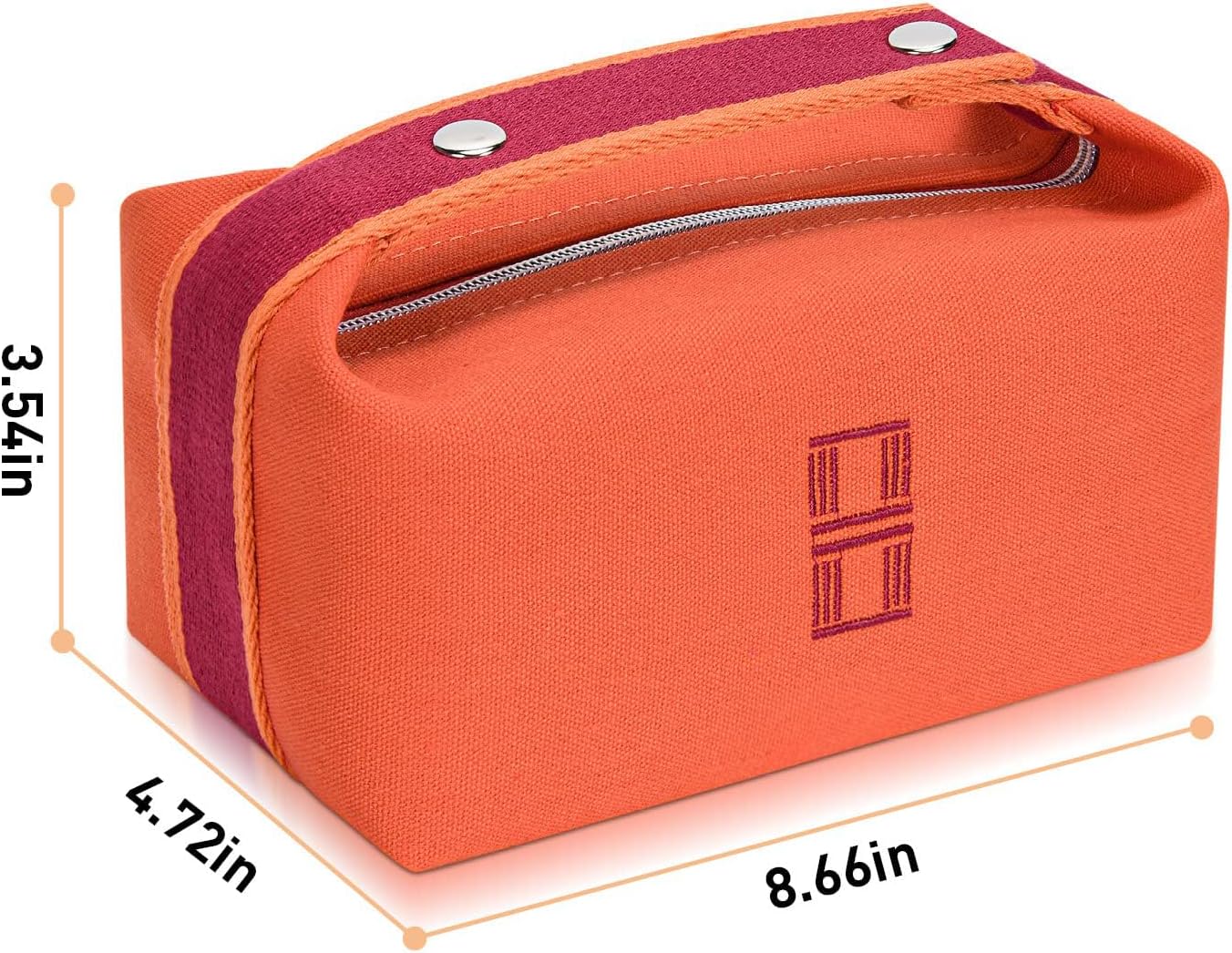 This makeup bag boasts an elegant orange-red canvas finish, giving it a vibrant and trendy look. The choice of color is both eye-catching and sophisticated, making it easy to spot in your luggage. The design speaks volumes about the fashion-forward approach taken by Sluxa.