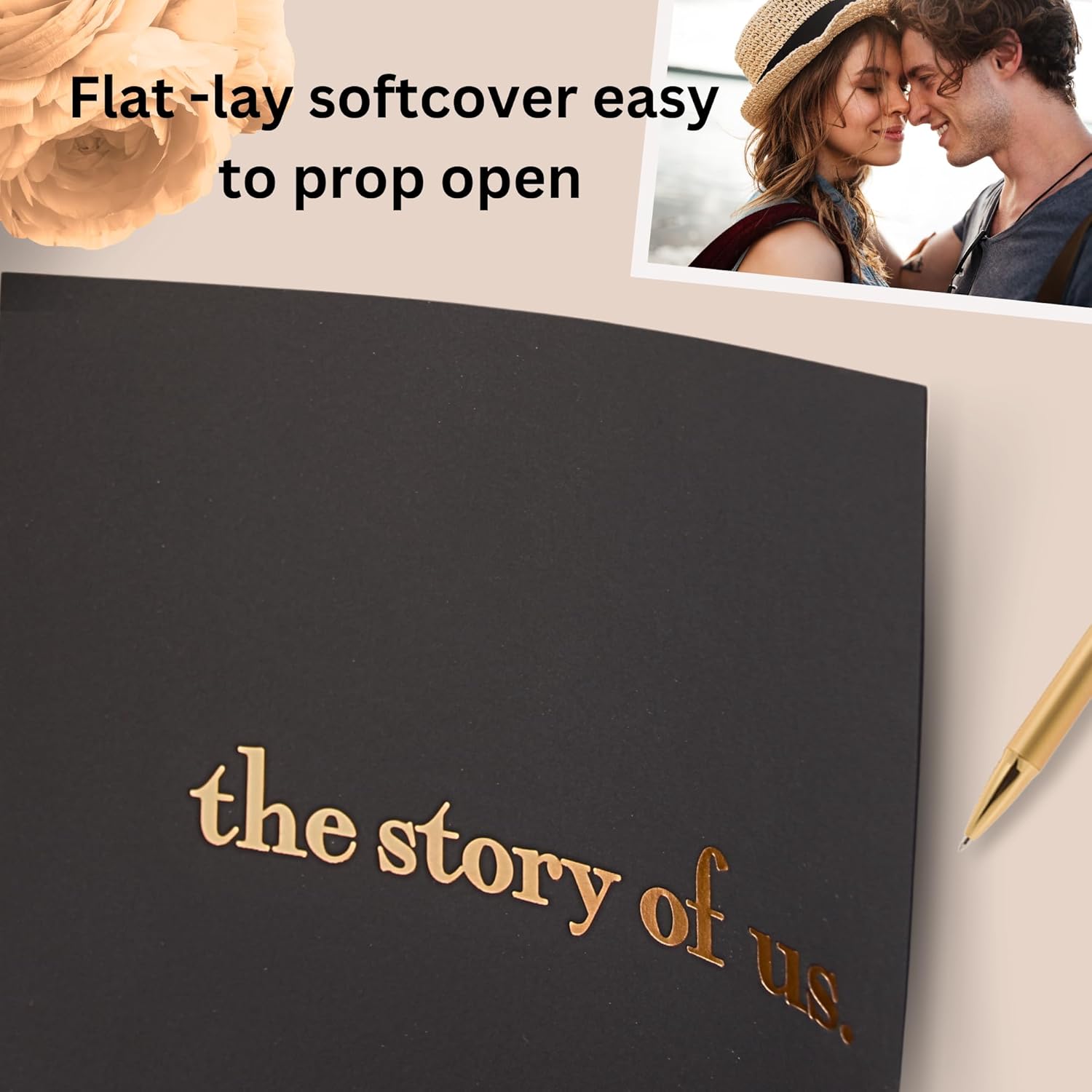 The Story Of Us Journal features a softcover design measuring 8.5x8.5 inches. The cover is adorned with embossed gold foil, giving it an elegant and luxurious feel. The build quality is sturdy, ensuring that your memories are preserved for years to come. The journal comprises 90 pages, offering ample space to document every precious moment.