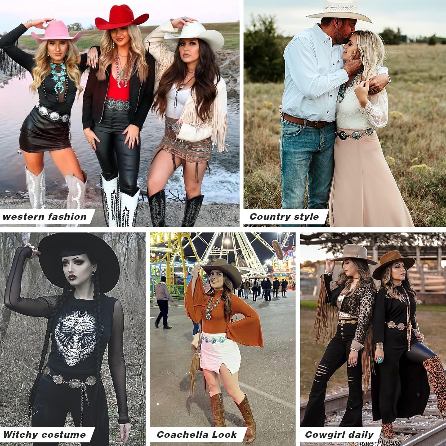 These cowgirl belts are excellent for matching with dresses, skirts, shirts, jeans, leather pants, and even bikini suits. They are versatile enough for different occasions such as working, shopping, traveling, parties, carnivals, dating, nightclubs, and the Coachella music festival.